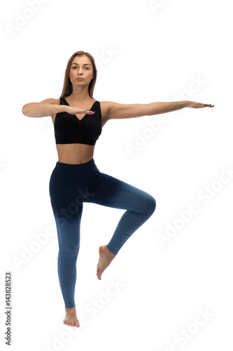 © Ruslan Kudrin, Obraz premium Girl practicing yoga in a studio on a white