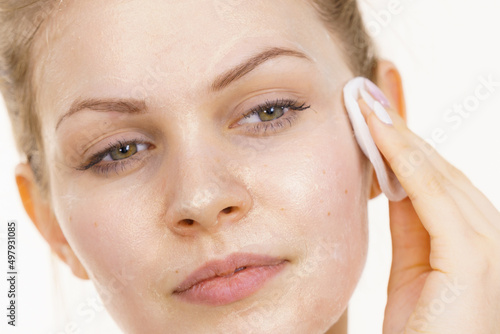 © anetlanda, Fototapeta premium Girl removes mask cosmetic
