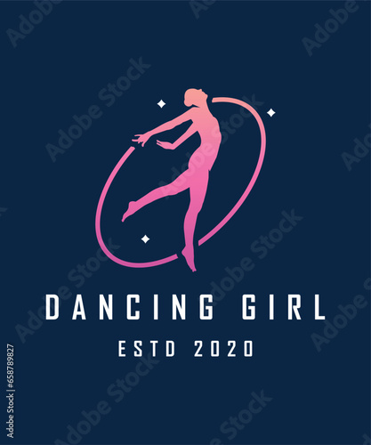 © Stud, Naklejka premium Girl rhythmic gymnastics vector illustration. Training performance strength gymnastics. Rhythmic gymnastics beautiful character. Women Acrobatic Gymnastics, flat