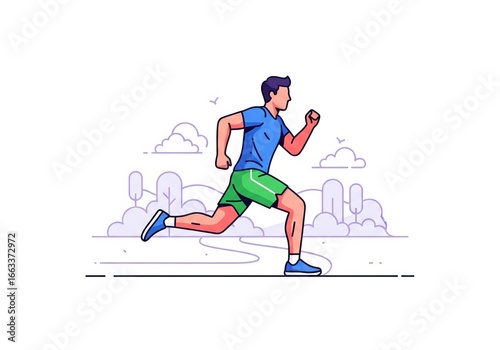 © Nantawat, Obraz premium Girl running on road and treadmill vector illustration of female athlete in action