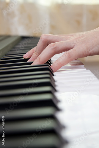 Fototapeta premium Girl's hands on the keyboard of the piano