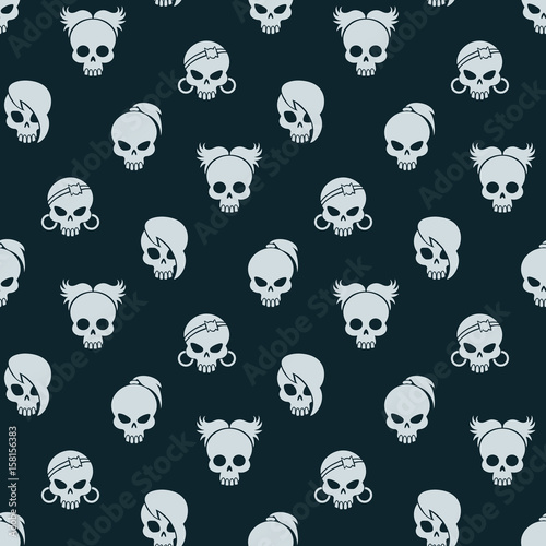 Fototapeta premium Girl skull seamless pattern. Vector cute skull seamless texture on dark background