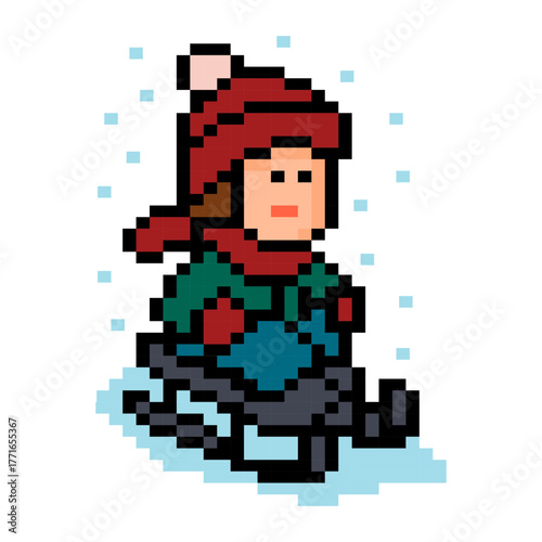 Obraz premium Girl Sledding Pixel Art
