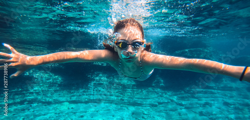 © kerkezz, Fototapeta premium Girl swimming in the sea