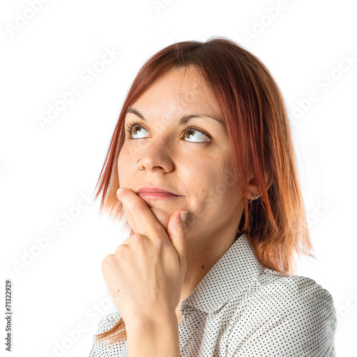 © luismolinero, Fototapeta premium Girl thinking over isolated white background