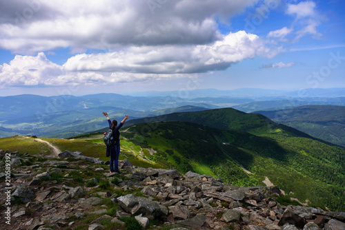 Fototapeta premium Girl traveler at the top of Tatra mountains