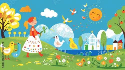 © Feri, Naklejka premium Girl Walking in a Sunny Day