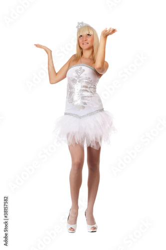 © Sergey Sukhorukov, Naklejka premium girl wearing a suit a snowflake