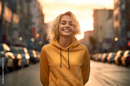 © Abraham, Fototapeta premium girl wearing sports outfit smiling in the city