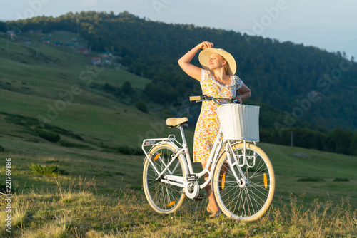 © bigguns, Obraz premium girl with a bicycle on a rural road