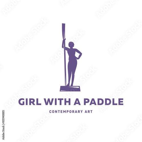 © DesignerVectoros, Naklejka premium Girl with a paddle statue, monument sign vector illustration