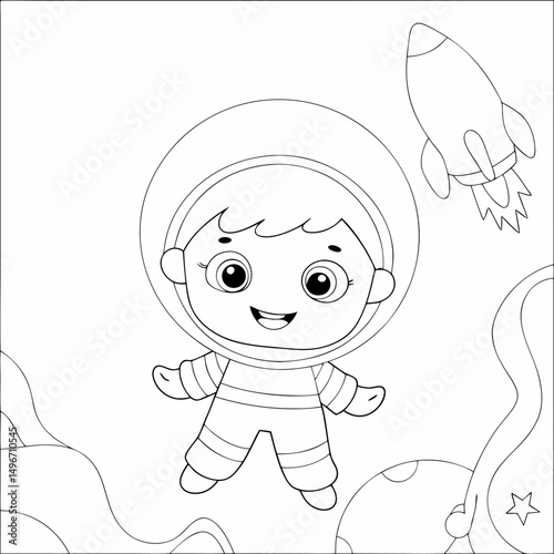 Obraz premium girl with a pencil Vector Illustration and Coloring Book Style on White