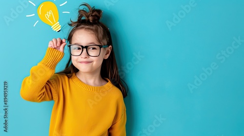 Fototapeta premium Girl With Glasses and Lightbulb Illustration