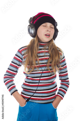 © Sergey Khamidulin, Fototapeta premium Girl with headphones listening to music.
