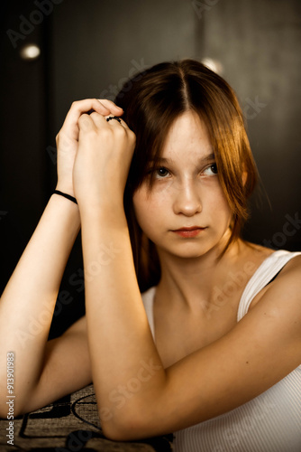 © Виктория, Fototapeta premium girl with long hair posing for the camera