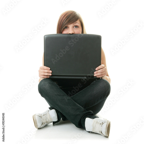 © Piotr Marcinski, Naklejka premium Girl working on her laptop.