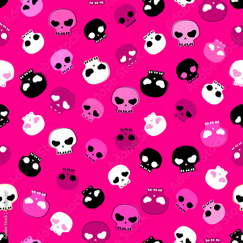 Fototapeta premium girlish aggressive cute skulls seamless pattern