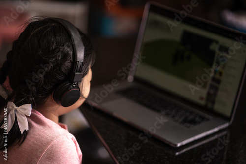 © kahapan, Fototapeta premium Girls are learning through the internet at home.