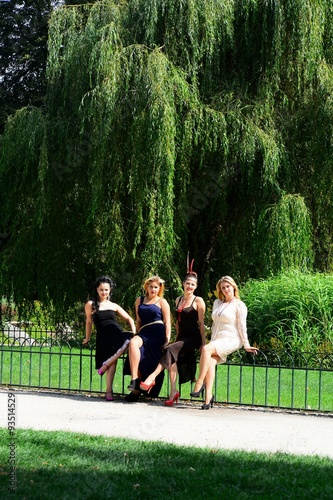 © bokstaz, Obraz premium Girls in bernardinu garden in Vilnius town on August 23, 2015