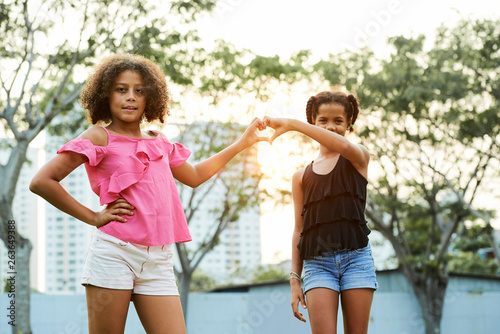 Fototapeta premium Girls joining hands in shape of heart