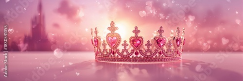 Naklejka premium Girls pink princess crown adorned with love jewels, suitable for costume...