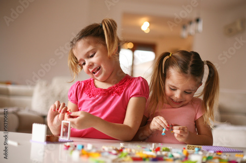 Fototapeta premium Girls playing at home.