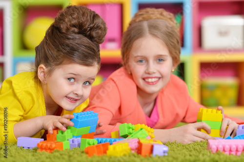 © aletia2011, Fototapeta premium girls playing with colorful blocks