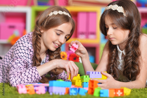 © aletia2011, Fototapeta premium girls playing with colorful blocks