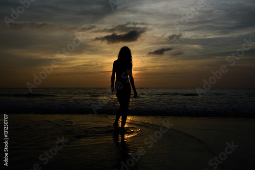 © Alexey Seafarer, Fototapeta premium Girls sadow on the beach