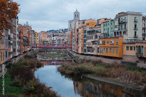 © jordieasy, Fototapeta premium Girona city skyline with famous Cathedral landmark on a cloudy winter day