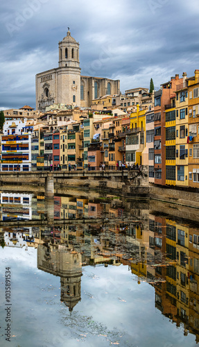 © ORV_71, Naklejka premium Girona reflected on the Onyar River