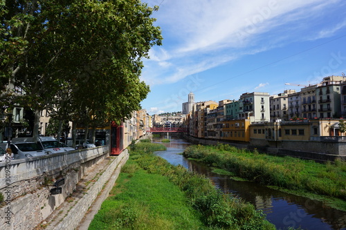 © Agnieszka, Obraz premium Girona, Spain, view from Post de Pedra, colourful buildings at the Riu Onyar