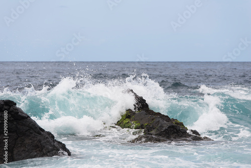© MG-Pictures, Fototapeta premium Gischt des Atlantik schlägt über Felsen