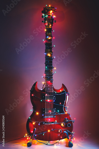 Obraz premium gitara elektryczna z lampkami choinkowymi