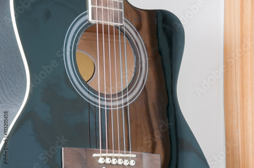 © Michael Ebardt, Fototapeta premium Gitarrenkörper an der Wand
