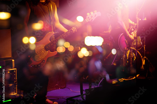 © ipopba, Fototapeta premium Gitarzysta na scenie dla tła, miękkiej części i plamy pojęcia