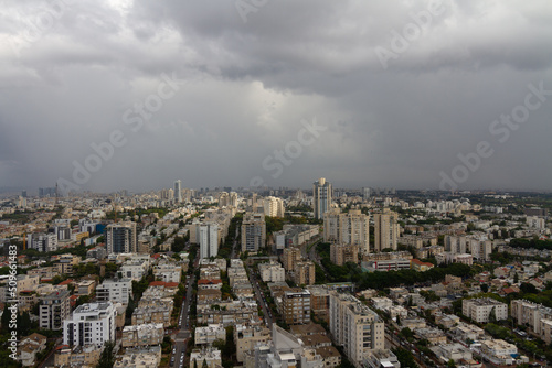 © Алексей Голубев, Fototapeta premium Givatayim, Israel. Top view of the city after the rain