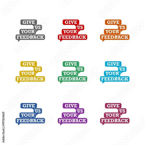 Obraz premium Give us your feedback speech bubbles icon isolated on white background. Set icons colorful