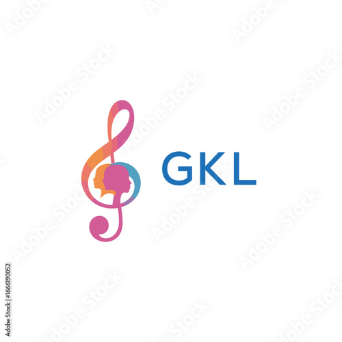 Fototapeta premium GKL “Creative music logo with human silhouettes and treble clef in gradient colors, GKL Later Logo, modern artistic design isolated on white background”