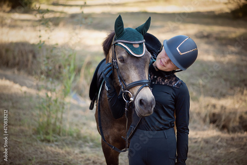 Fototapeta premium Glückliche Reiterin mit Pferd