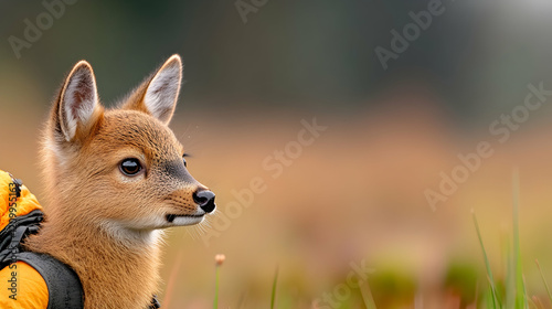 © Mohan, Fototapeta premium Glückliches, junges, müdes Rentier auf einer großen Weide in Norwegen, Skandinavien. Gute und ökologische Tierhaltung in der Landwirtschaft.