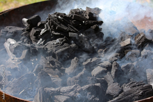 Fototapeta premium Glühende heiße Holzkohle im Grill