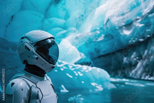 Fototapeta premium Glacial Guardian: A Robot's Arctic Adventure