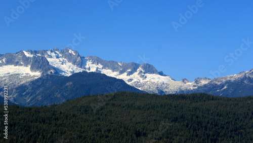 © J A Nicoli, Fototapeta premium Glacier and mountains, peaks, sky, Canada.