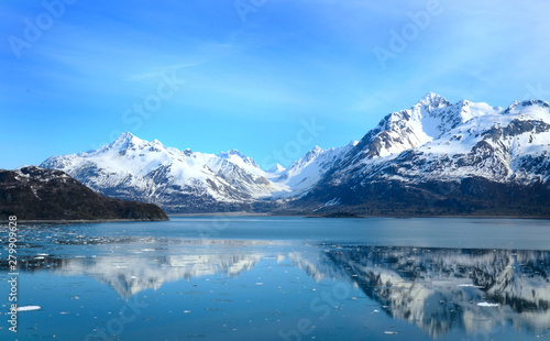 Fototapeta premium Glacier Bay na Alasce z odbiciem w wodzie. górski krajobraz ze śniegiem....