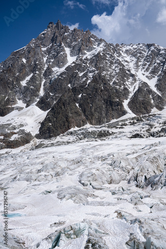 Fototapeta premium Glacier ice at the Mont Blanc in the French Alps - Bossons Glacier under the Aiguilles de Midi
