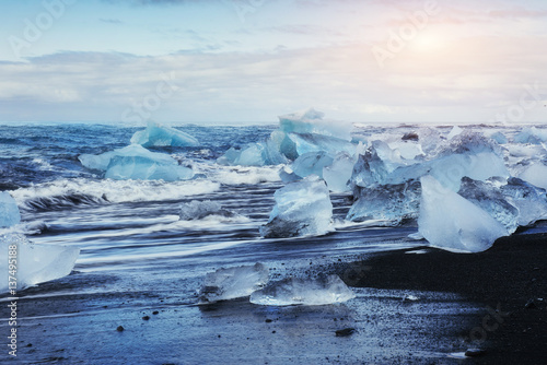 © standret, Obraz premium Glacier on black volcanic beach Iceland