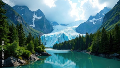 © suchetpong, Fototapeta premium Glaciers' icy tongues reach into the forest canopy, forest, trees