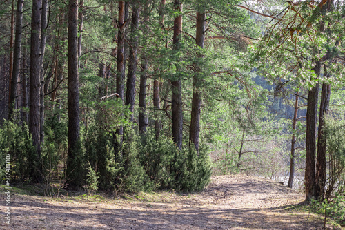 © J_Koneva, Fototapeta premium glade for camping in a coniferous forest in belarus.