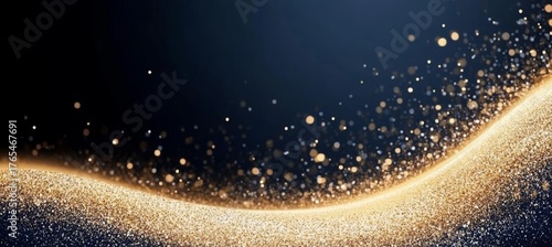 Obraz premium Glamorous Abstract Wave of Gold Glitters on Luxurious Dark Night Blue...